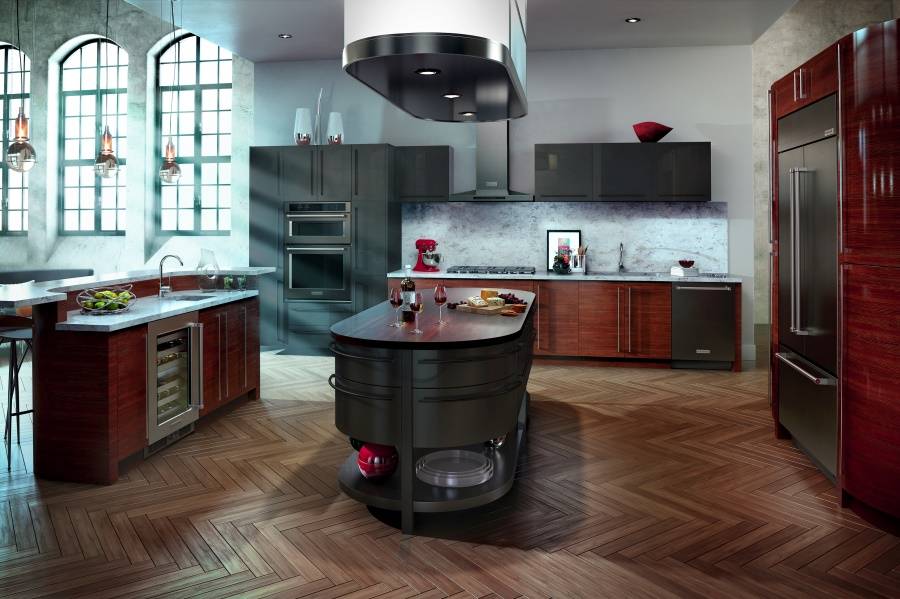 Бытовые приборы из чёрной нержавеющей стали в интерьере от KitchenAid