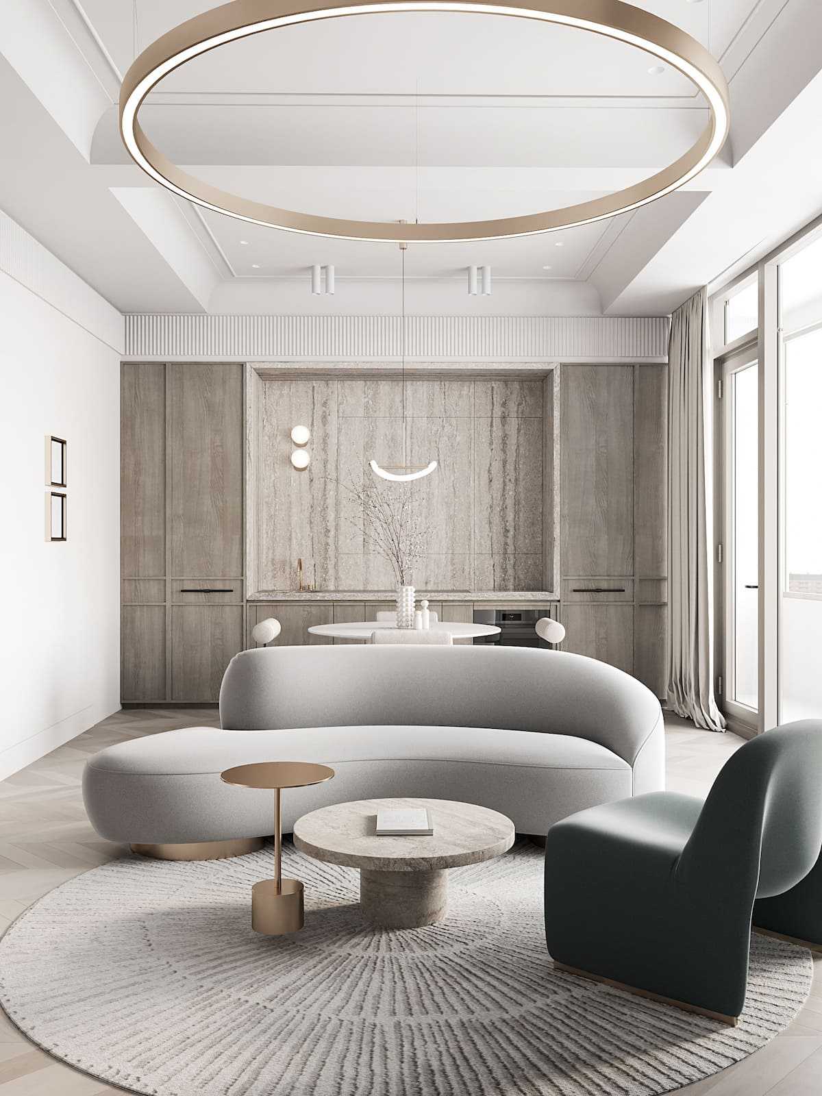 В этом году кухни-гостиные не так актуальны, как раньше. Наверное, потому, что люди в полной мере оценили неудобство жизни без настенных дверей и решили, что удобству следует отдать предпочтение.