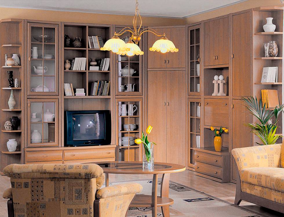 Стенка с угловым шкафом для гостиной: особенности стиля