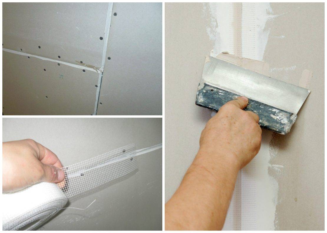 Оклейка серпянкой. После подсыхания грунтовки стыки между гипсокартонными листами и углы оклеиваются сетчатой лентой. Серпянка обеспечивает целостность шпаклёвки в проблемных зонах. Допустимо использовать вместо тканевой ленту из прочной бумаги. Более качественных результатов позволяет добиться использование в углах специального алюминиевого профиля с уже закреплённой на нём сеткой.