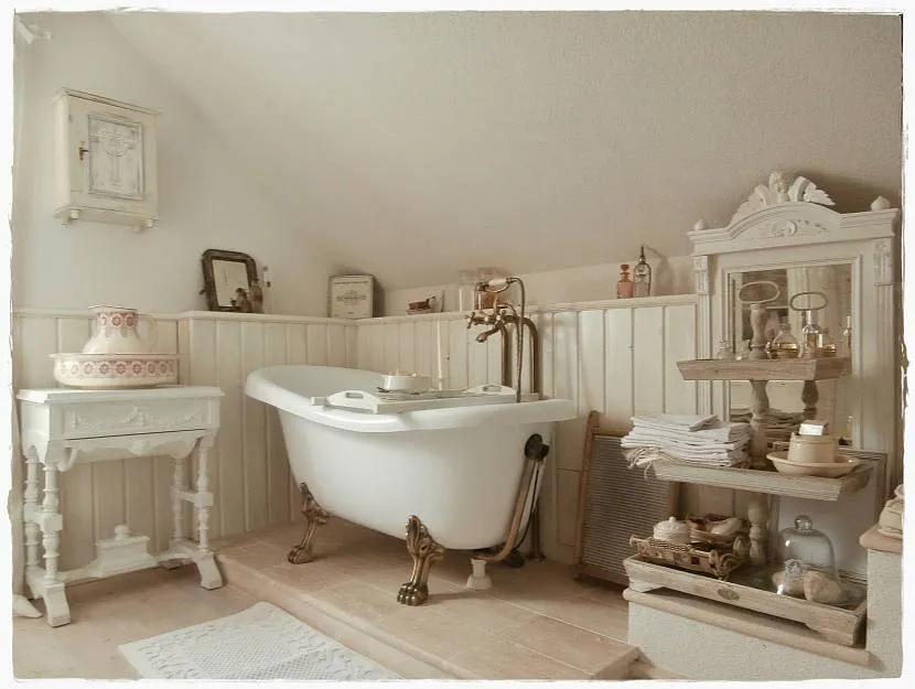 К ванной в стиле шебби-шик подходит далеко не любая сантехника. Неуместно в санузле с подобным оформлением смотрятся минималистические унитазы-инсталляции, высокотехнологичные душевые кабины: они нарушают дух старины и небрежности, свойственный «потертой роскоши». Чтобы не искать компромисса между удобством и внешним видом сантехнических изделий, используют искусственно состаренные вещи с ретродекором. Среди них:
