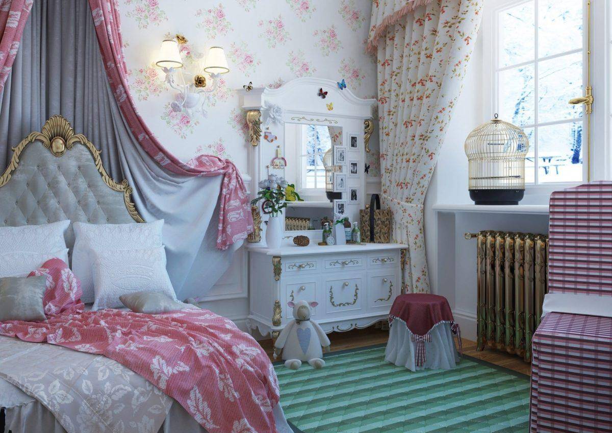 В результате комната становится очень уютной и романтичной, но в тоже время она не кажется устаревшей или захламленной. Всего этого удается достичь только в том случае, если тщательно подбирать каждый предмет интерьера, начиная от самой мебели, заканчивая текстилем, вазами или лампой.