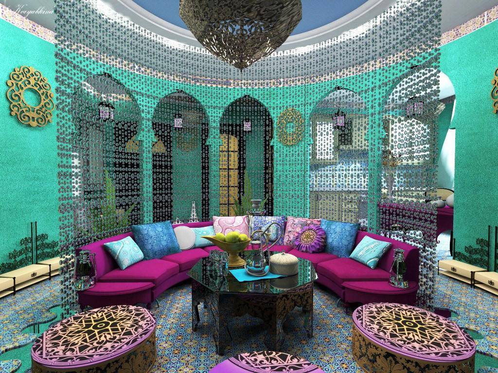 Восточный стиль характеризуется использованием богатой палитры цветов. Все оттенки сочные, яркие, но в то же время гармонично сочетающиеся между собой