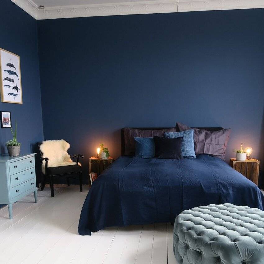 Помимо всего прочего, зеленый цвет заставляет нас чувствовать себя ближе к природе. То же самое касается синего. Он снижает частоту сердечных сокращений и отлично подготавливает наше тело ко сну. Кроме того, темно-синий цвет успокаивает сам по себе и благодаря нейтральности отлично вписывается в спальню.