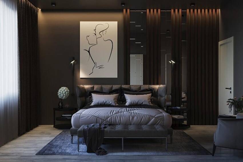 Идеальная темная спальня станет настоящим украшением современного жилища.