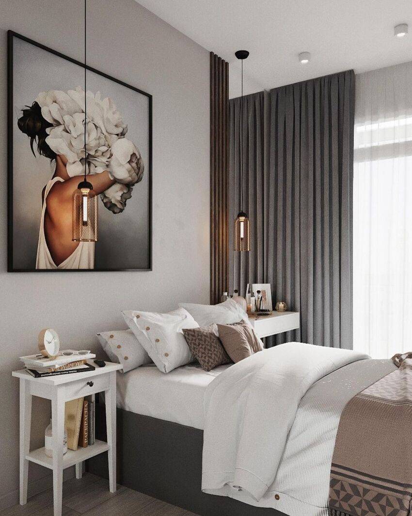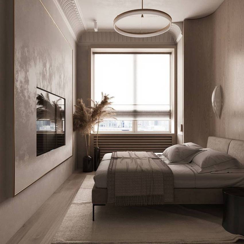 Т.е. вы можете использовать в спальне сколько угодно оттенков серого, но они все должны быть либо теплыми, либо холодными. Это трудно соблюсти, потому что пока не поставишь рядом два объекта, не всегда можно понять, в какую сторону смещен цвет. И это та причина, почему фото в интернете расходятся с реальными дизайнами в жизни. Даже на реальной фотографии спальни камера не передаст разницу в оттенках, в итоге на фото все выглядит классно, а в жизни не очень