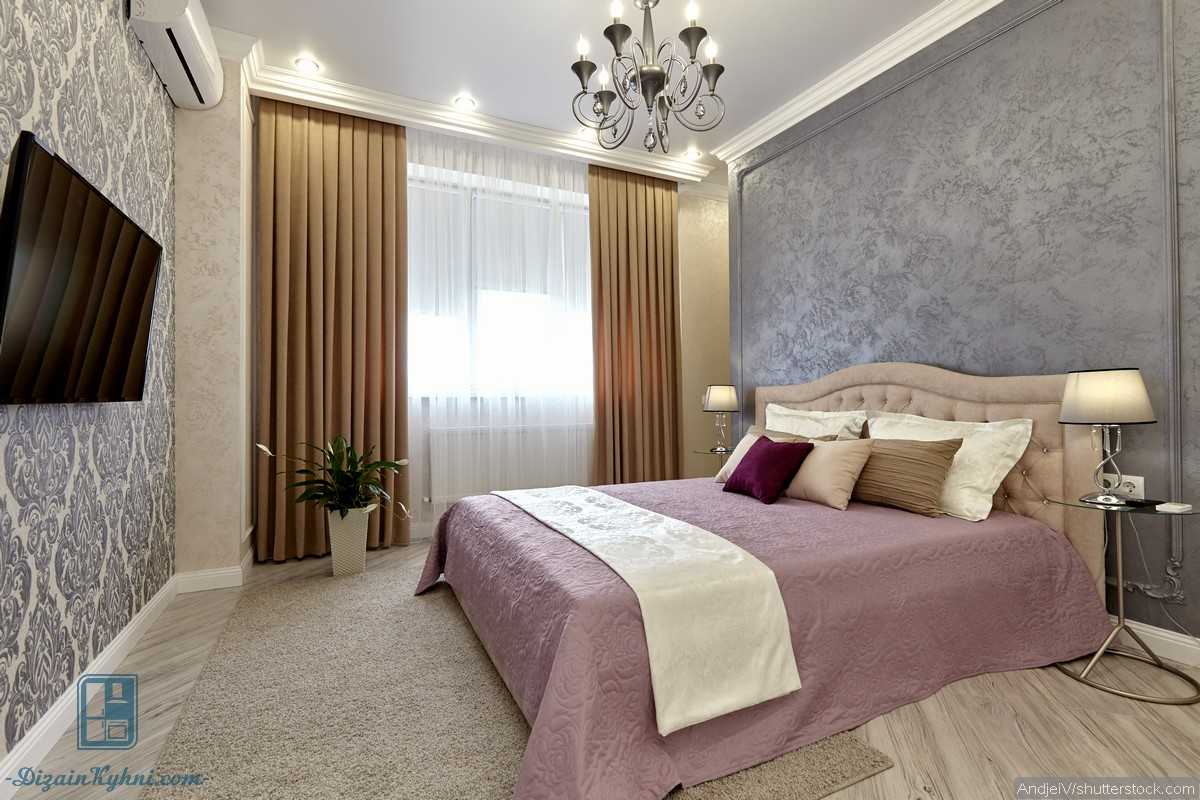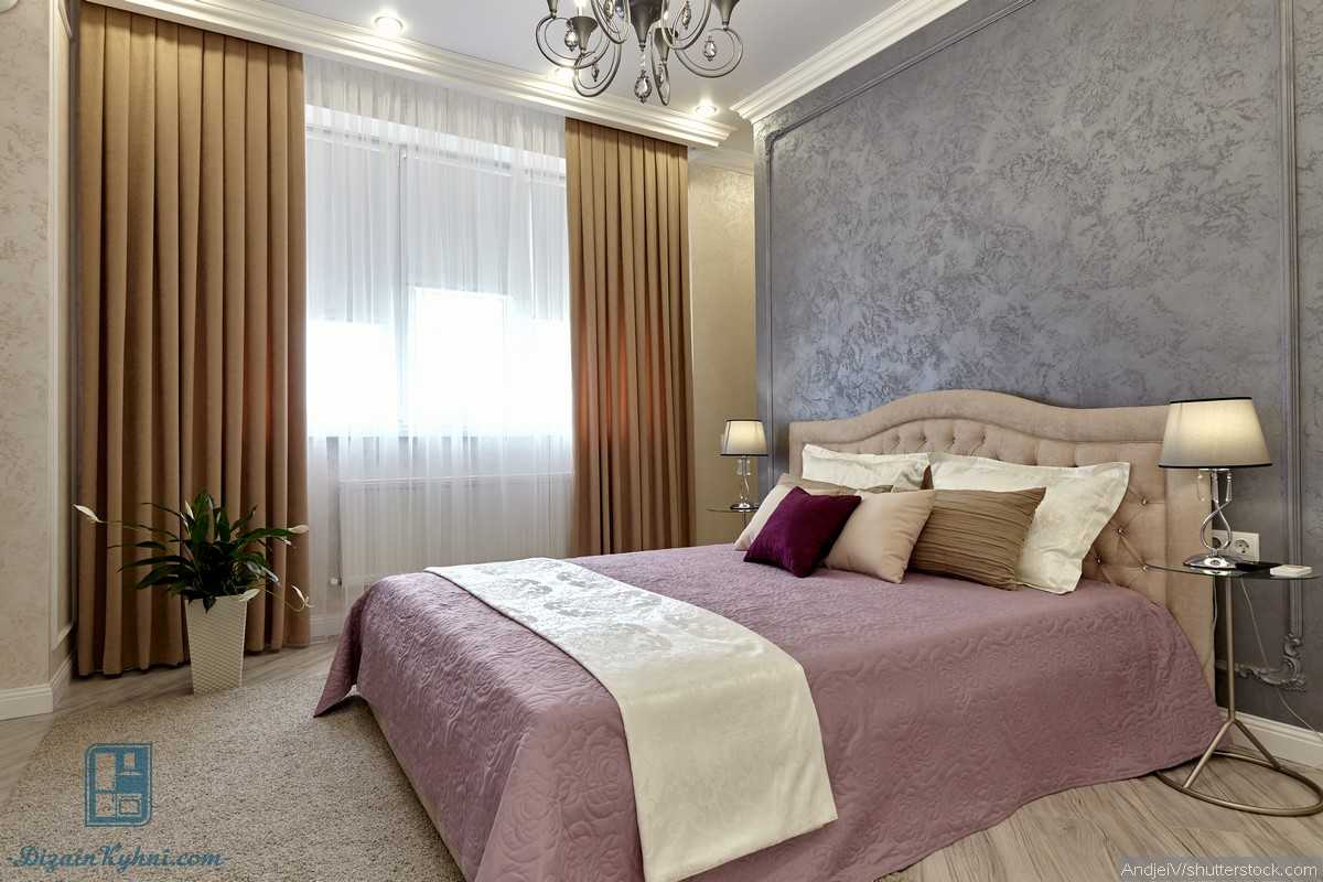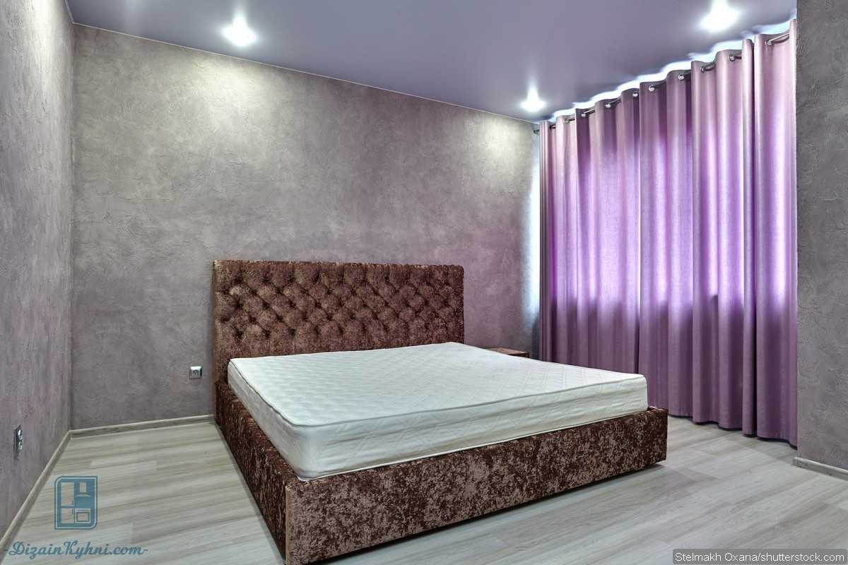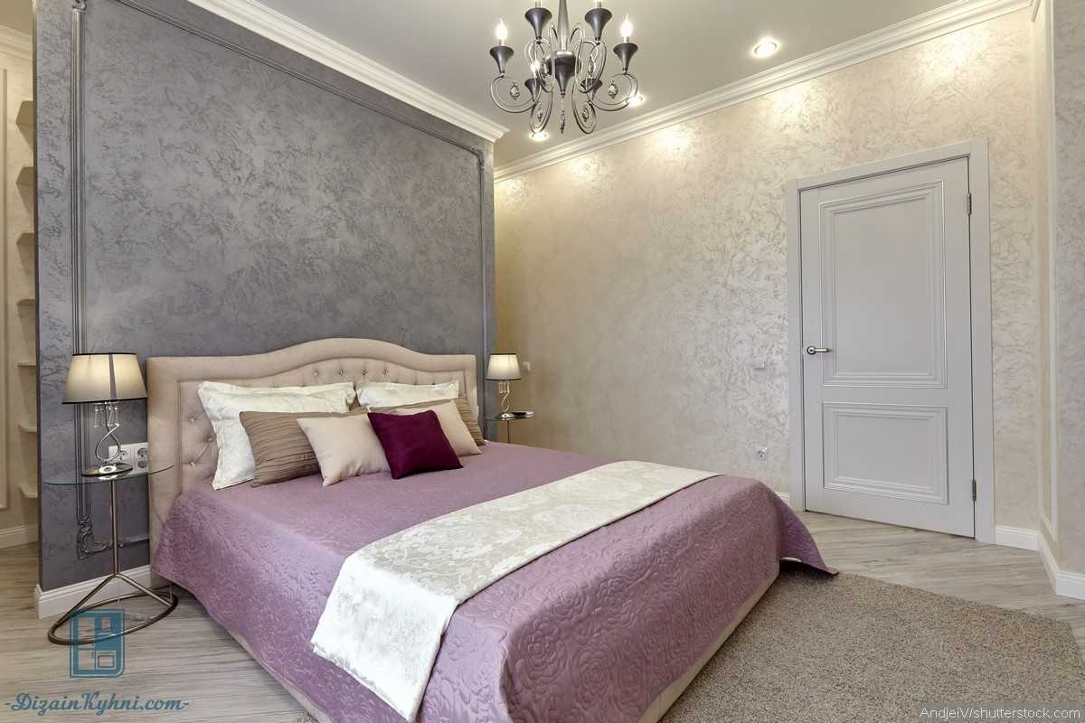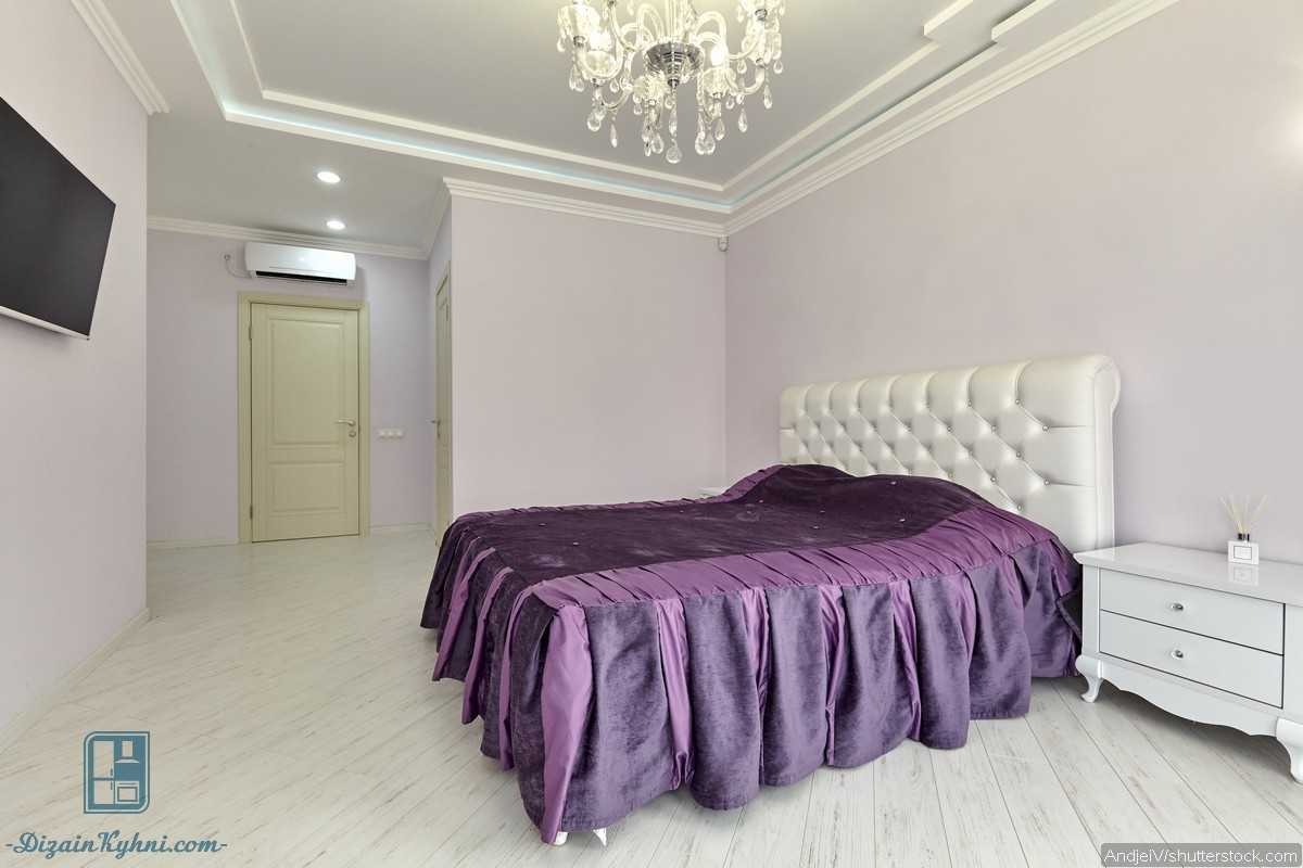 - Фиолетовый. При использовании этого величественного благородного оттенка рекомендуется в спальне избегать его доминирования. Целесообразно отдавать предпочтение включению в более спокойный в цветовом решении интерьер фиолетовых мистических акцентов в небольшом количестве.