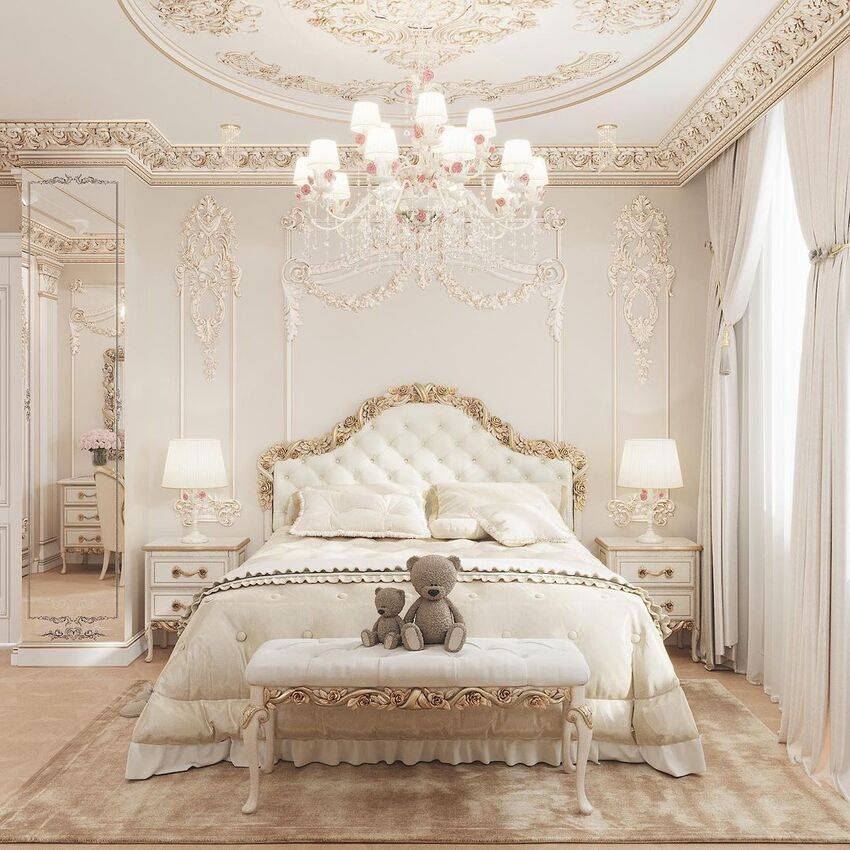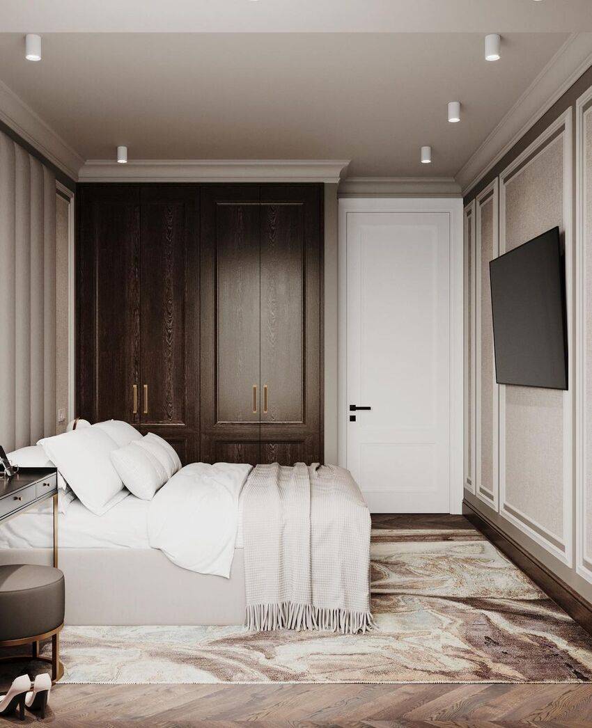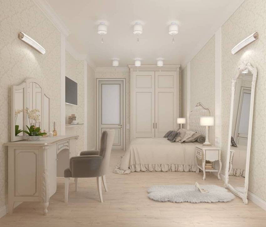 Классический стиль. Он функционален и никогда не выходит из моды. Характеризуется наличием большой кровати, обилием текстильного декора, возможным использованием мрамора и наборного паркетного пола.