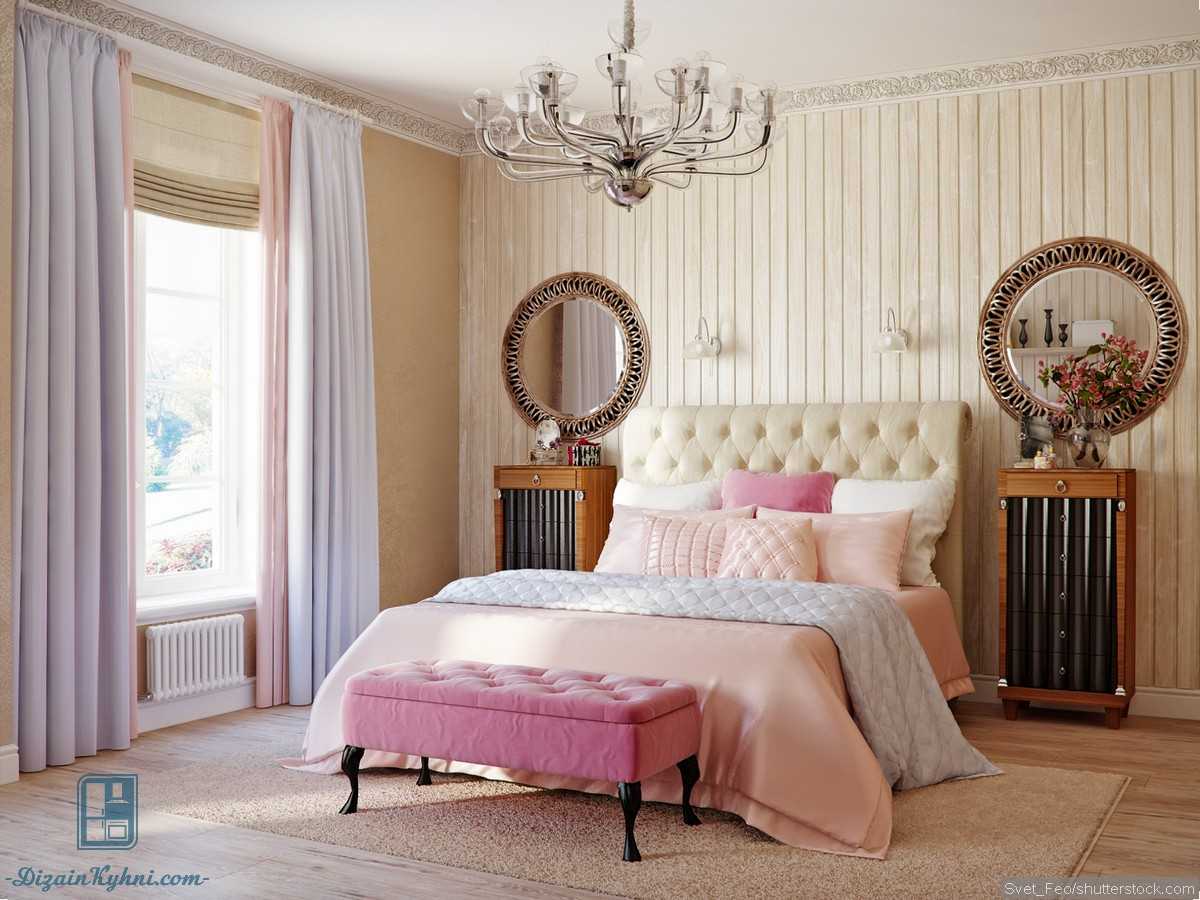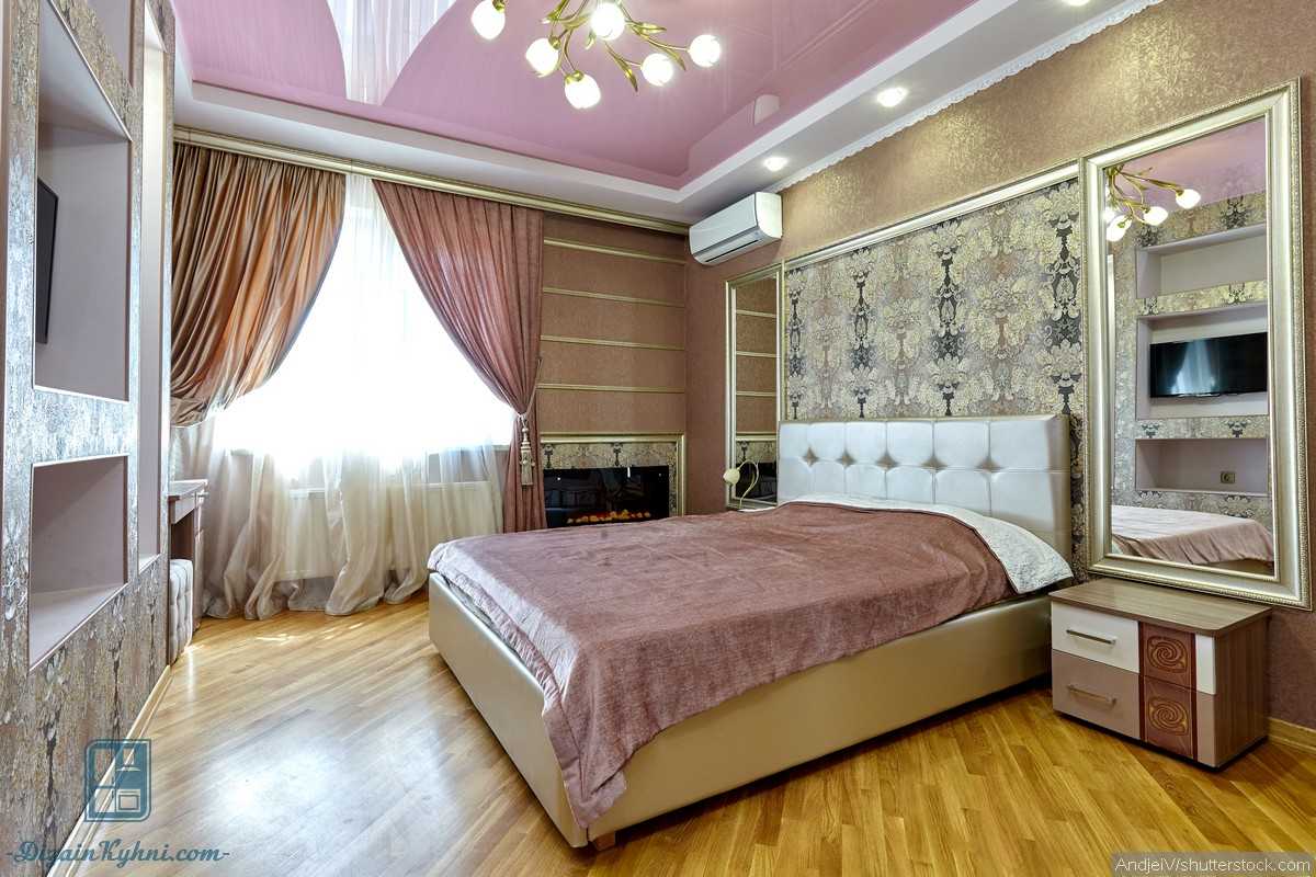 Для превращения собственной спальни в роскошные королевские апартаменты стоит прибегнуть к помощи бежевого. Попробуйте объединить его с розовым. Бежевый узор может присутствовать на обоях, ковре или шторах.