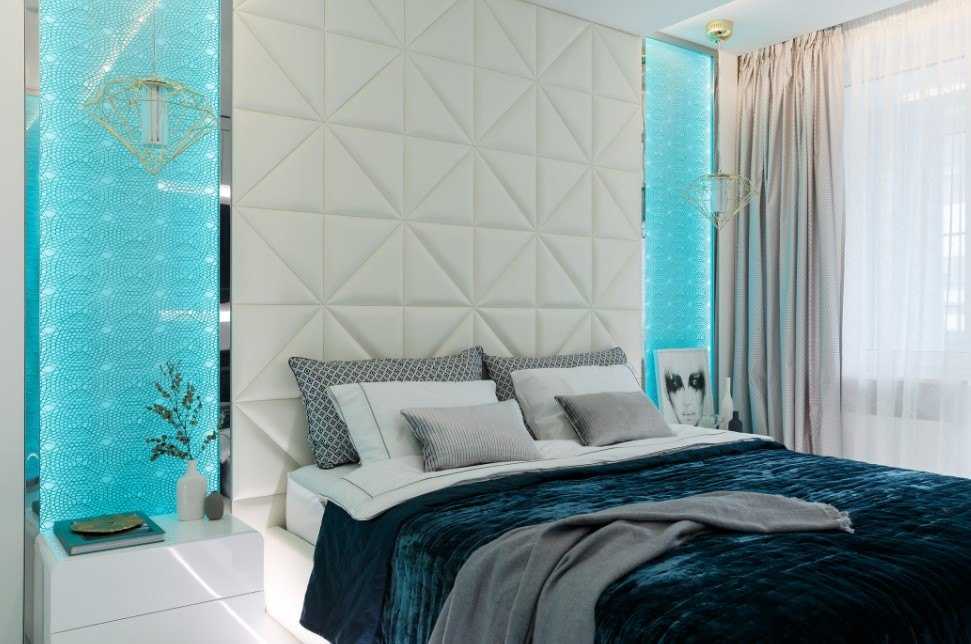Оформление стены изголовья кровати задаёт тон всей спальне