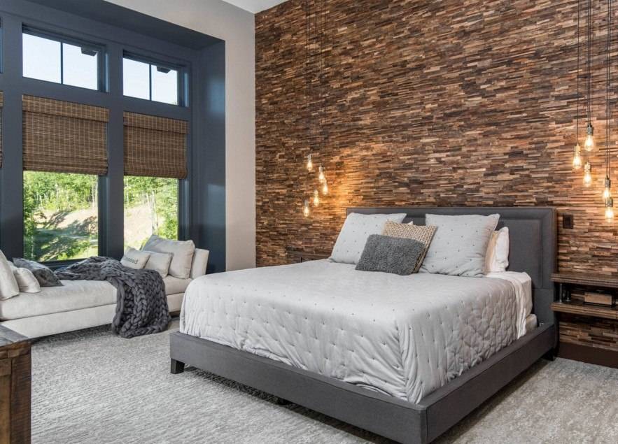 Оформление стены изголовья кровати задаёт тон всей спальне