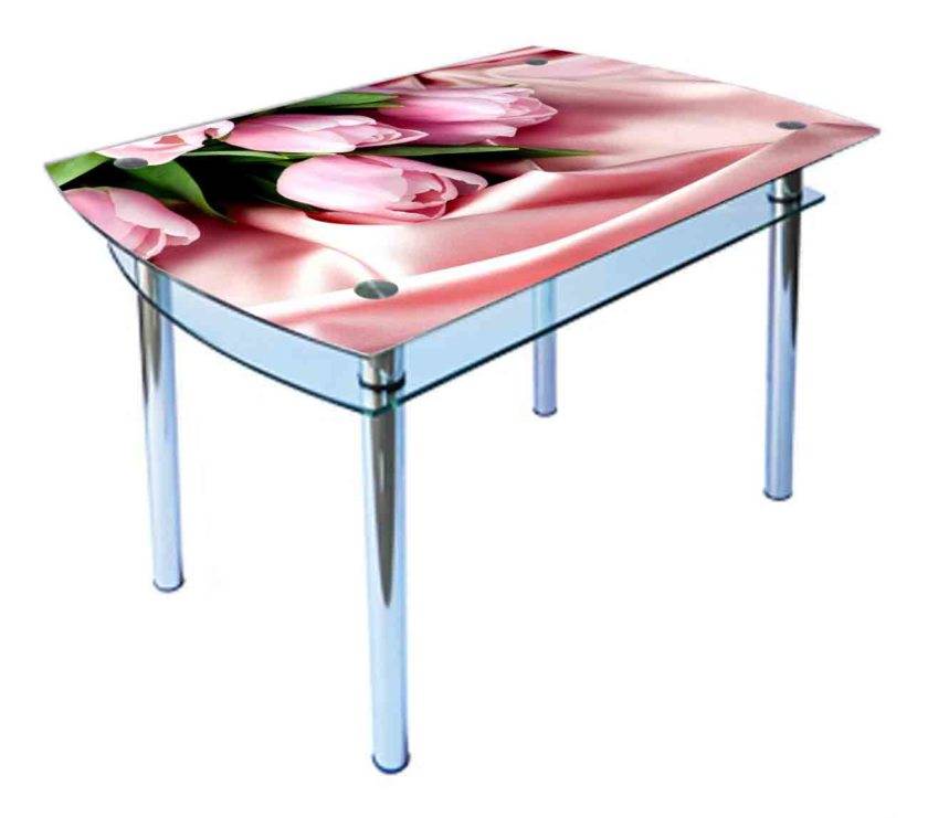 - стол из стекла с напечатанным на нем рисунком легко очищается от загрязнений, прост в уходе;