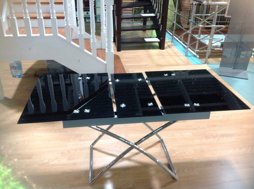 В основном стеклянные столы выполняются из комбинированной конструкции. Ножки и подстолье выполняются из металлических, хромированных, деревянных, каменных и других материалов. Из них же может быть выполнена рама для стекла.