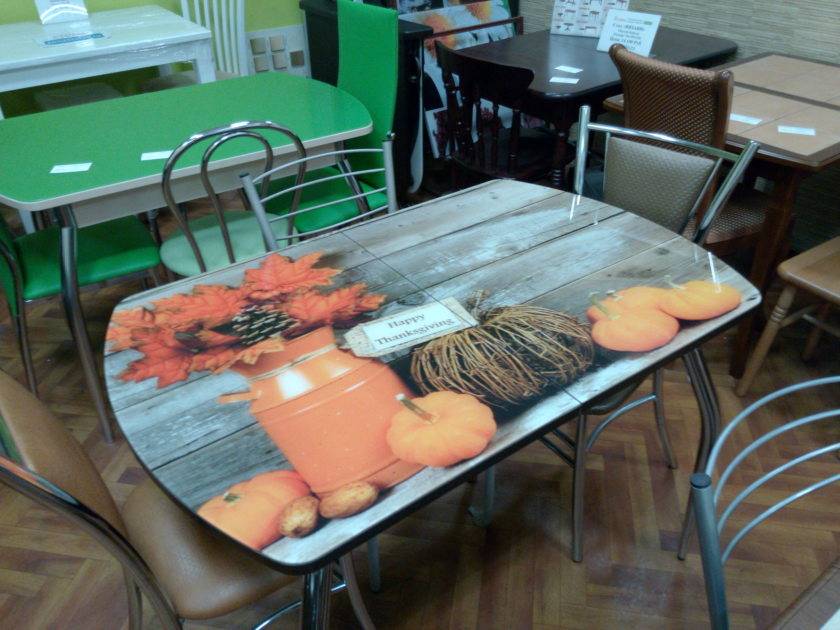 Трансформер — способен превратится из большого кухонного стола в журнальный. Повышается размер изделия, его площадь и высота. Мода на них появилась уже после СССР.