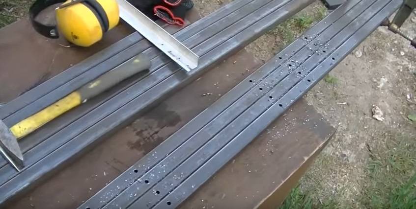 - Из профильной трубы делаем заготовки необходимых размеров для стоек и крепежей;