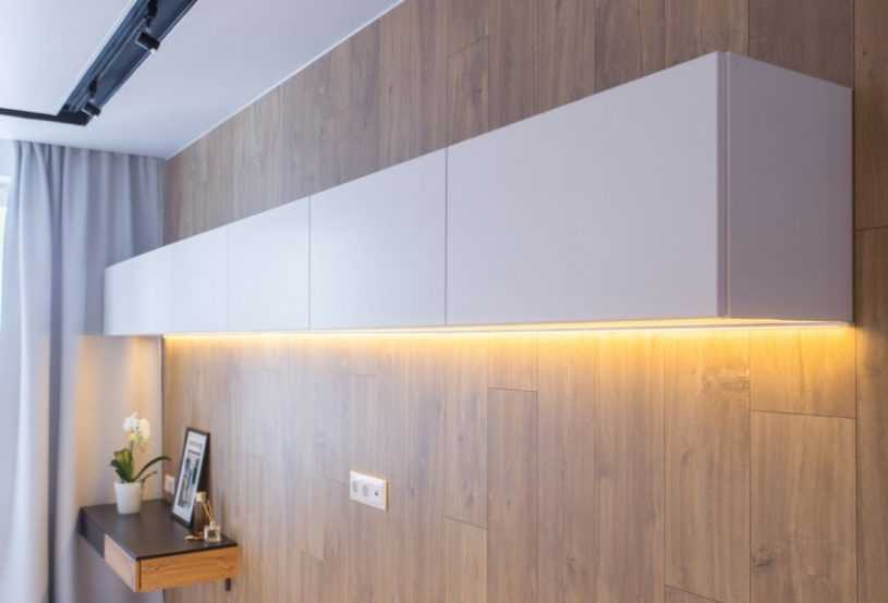 Стоит позаботиться и о внутренней подсветке, особенно если шкаф глубокий или заменяет собой гардеробную.