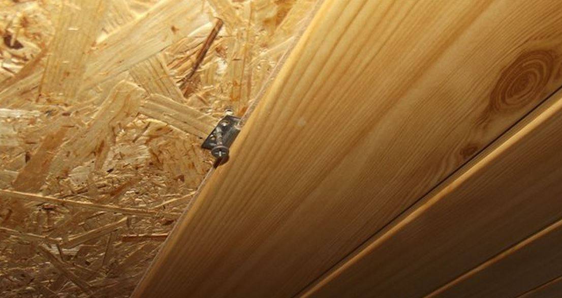- вторую планку вставляют в зазор первой панели под углом и закрепляют шурупами с другой ее стороны;