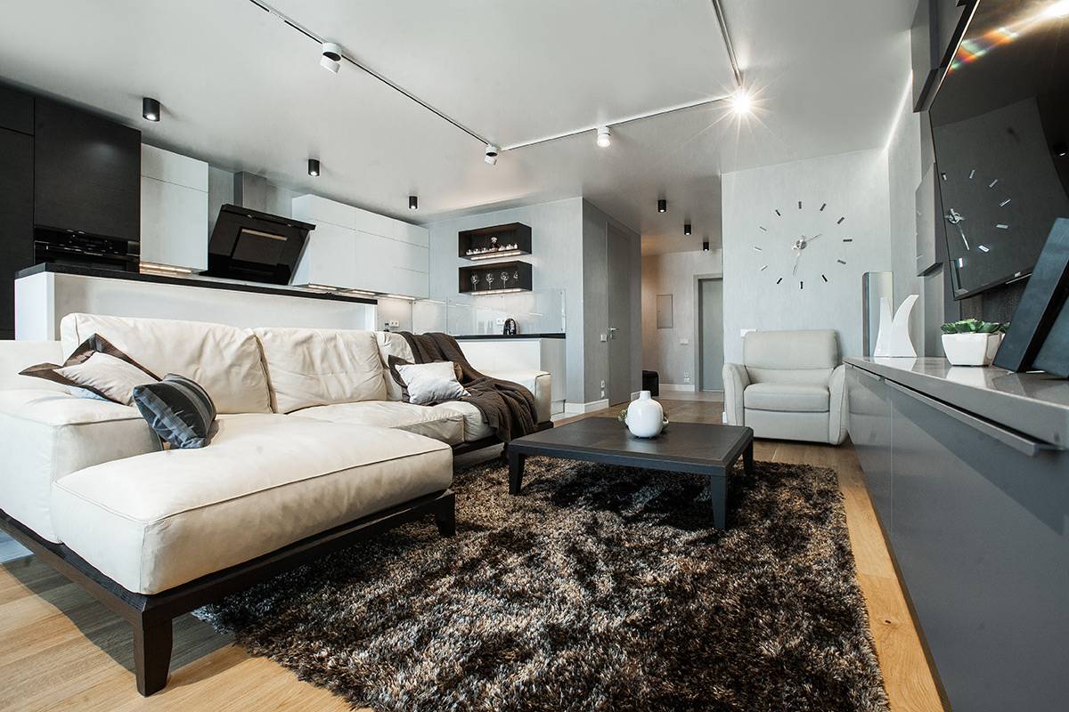 - Отличительная черта этого направления — максимум свободного пространства: не стоит перегружать и загромождать интерьер лишними деталями.