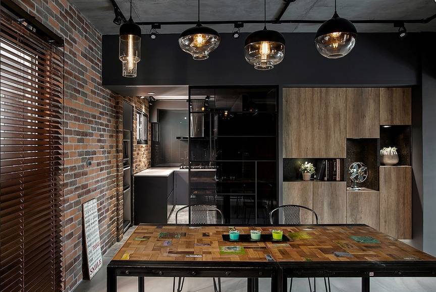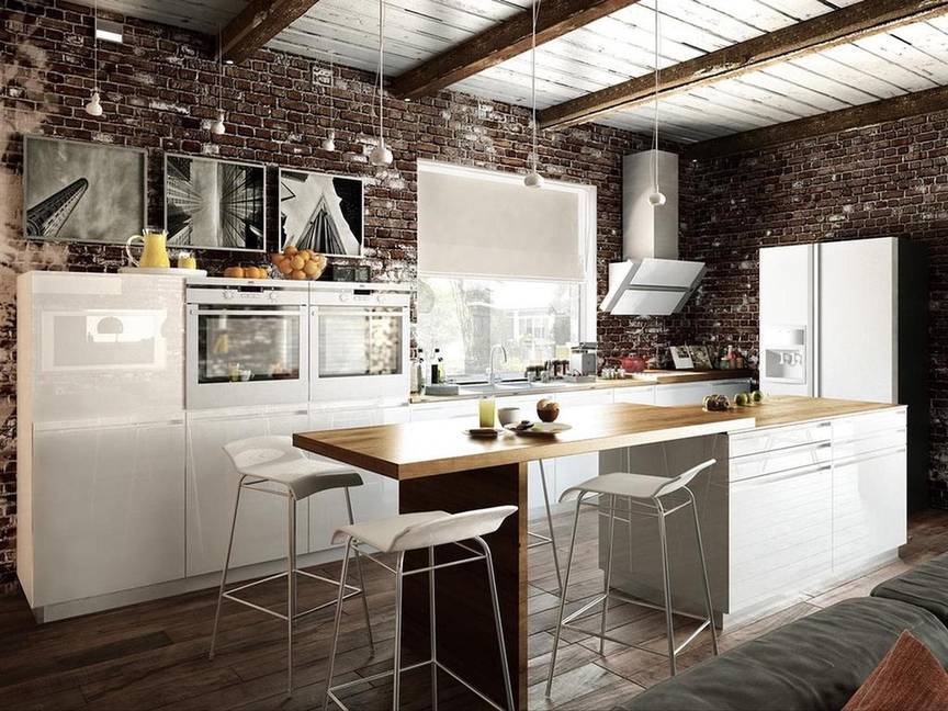 Если кухня имеет небольшую площадь, а хочется оформить ее в модном стиле, то есть вариант выгодного объединения с лоджией – площадь значительно увеличится, а заодно будет больше света. Более правдоподобно смотрится объединенная кухня с гостиной – именно это сочетание создает иллюзию промышленного помещения.