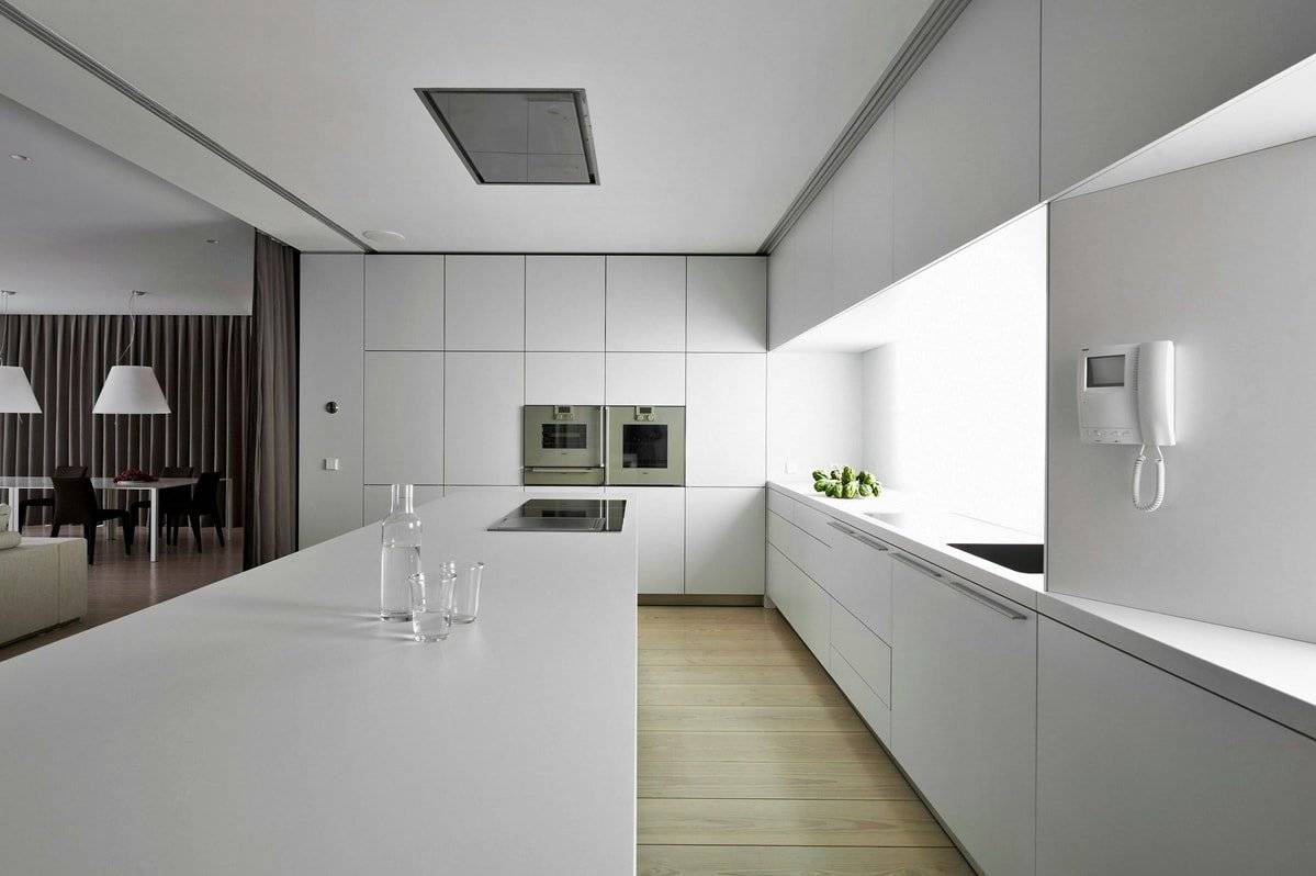 Большая светлая кухня в стиле минимализмИсточник remontkit.ru
