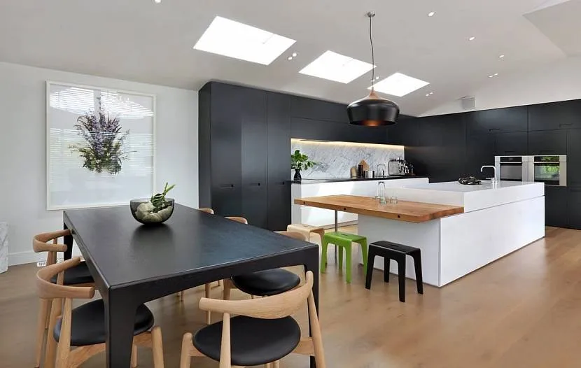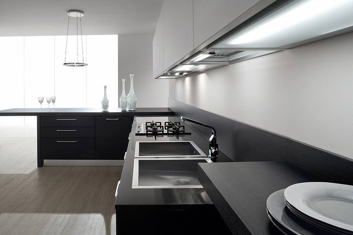 Многофункциональная кухня, оформленная в стиле минимализма в черно-белом варианте Источник roomester.ru