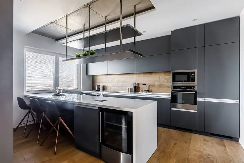 - эргономичность и высока функциональность, которой способствует использование исключительно встраиваемой техники;