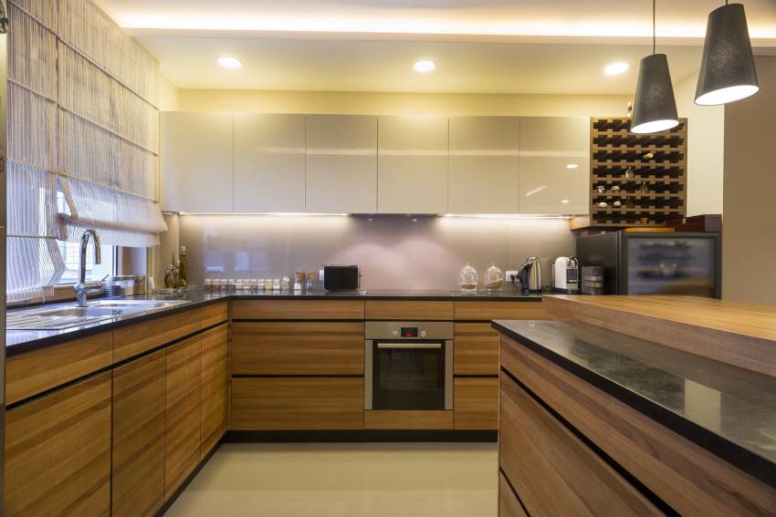 Допускаются эксперименты с различными видами отделки. В дизайне можно использовать древесину, а также имитацию таких материалов, как стекло, металл и камень. При этом коричневая кухня, сохраняя свою консервативность, выглядит более уютной, чем помещения, оформленные в других оттенках.
