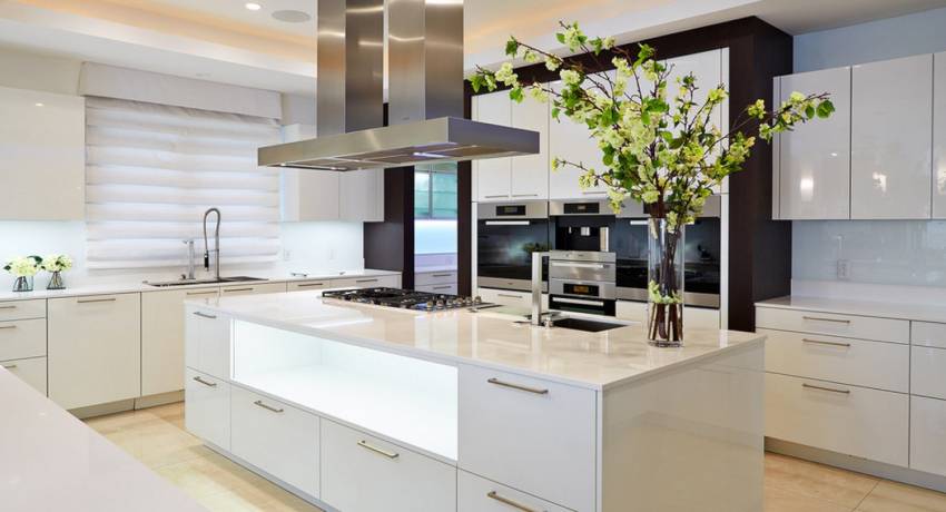 Белые кухни в стиле хай-тек: светлые и стерильные интерьеры