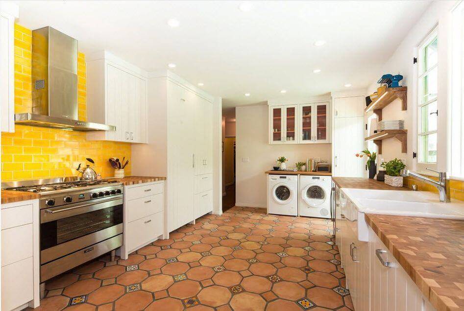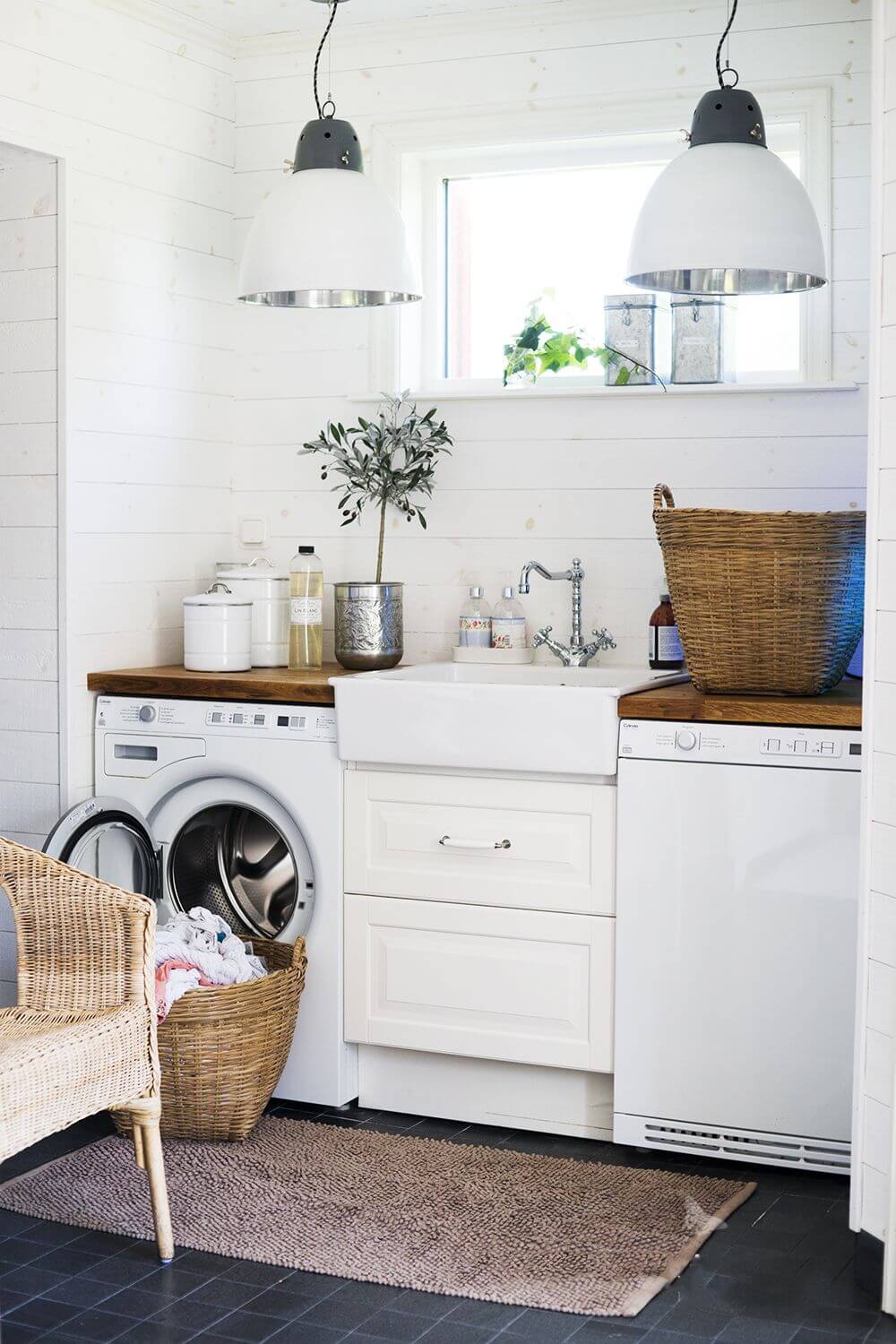На самом деле перенос стиральной машины в помещение кухни дает сразу несколько дополнительных преимуществ: