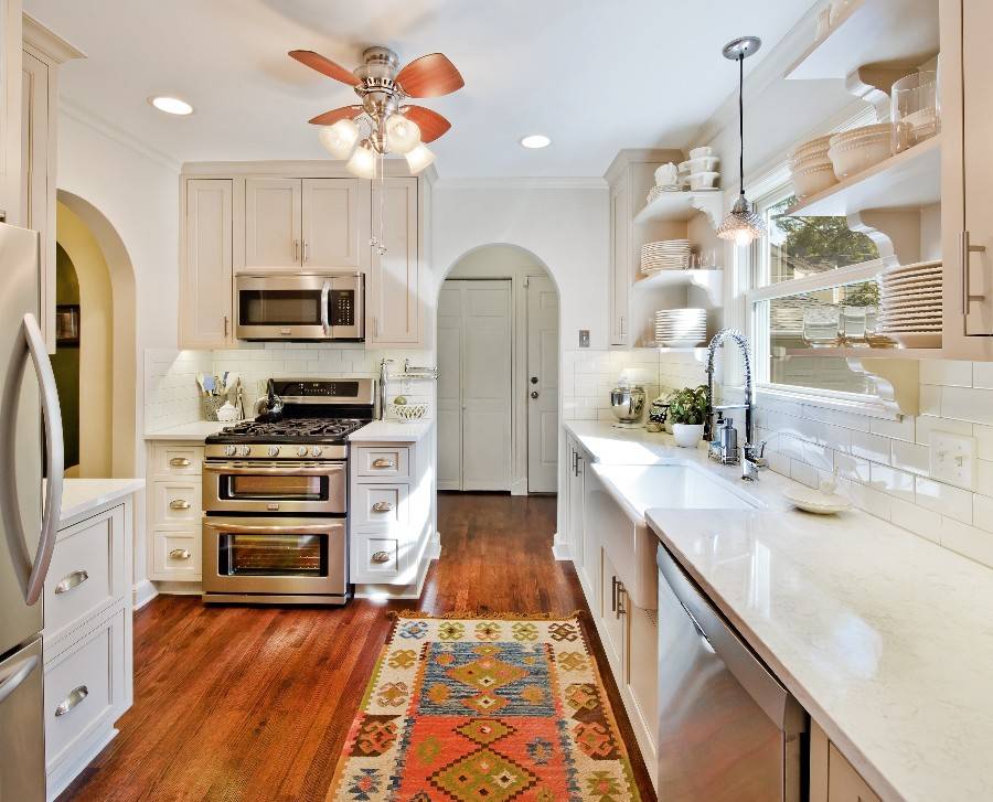 Ковры из натуральных материалов (шерсть, шелк, хлопок) не подходят для кухни, так как за ними тяжело ухаживать, и они обладают высокой вероятностью появления плесени и микроорганизмов. При готовке на кухне выделяется конденсат (если отсутствует или неисправна вытяжка), который оседает на стенах, потолке и коврах, в том числе. Следовательно, лучше выбрать ковер или дорожку из искусственных материалов (полипропилен, полиамид, хит-сет), которые не боятся влаги. Они хорошо переносят чистку химическими средствами и, при этом, не теряют красивый внешний вид.