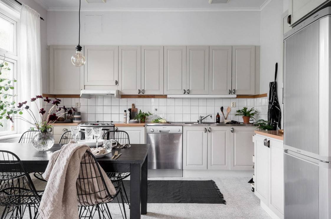 Если определиться с выбором материала вы не можете, то подумайте над вариантом комбинирования покрытий. Он не только позволит постелить оба понравившихся покрытия, но и визуально зонировать кухню. Например, рабочую зону застелить плиткой, которая не боится влаги и жира, а зону столовой – пробковым покрытием. Что нужно знать при комбинировании напольных покрытий в кухне?