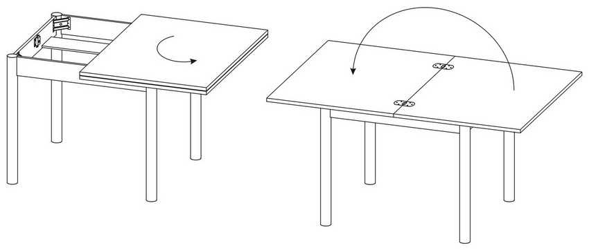 Принцип работы раздвижного кухонного стола