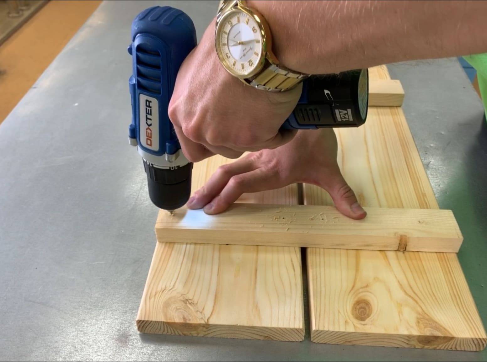 Деревянная доска Рейка шириной 30 и 40 мм Саморезы по дереву Сверло 2 × 49 мм Бита PZ1 Пила торцовочная Дрель-шуруповёрт Лобзик Щётка для дрели нейлоновая Щётка для дрели металлическая Шлифовальный лист Пилки для лобзика Сверло перьевое Морилка для дерева Лак по дереву Кисть Перчатки