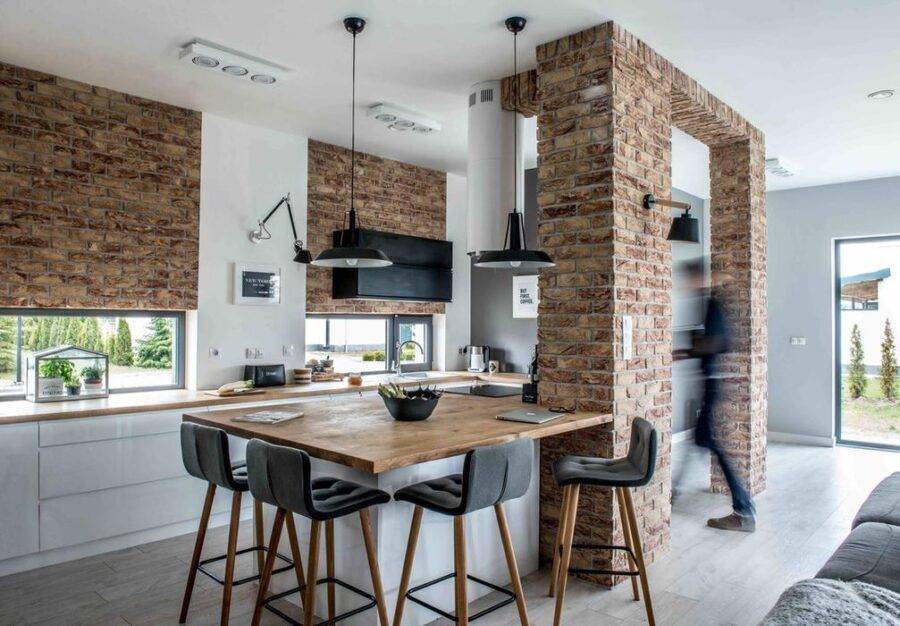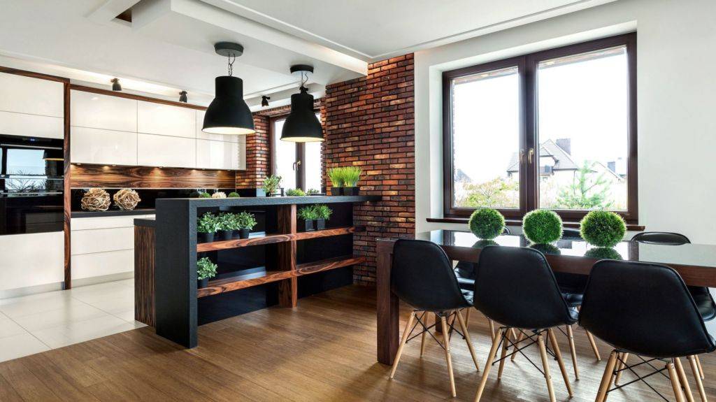 Барная стойка послужит обеденной зоной и зрительно отделит кухню с местом принятия пищи от гостиной или спальни.