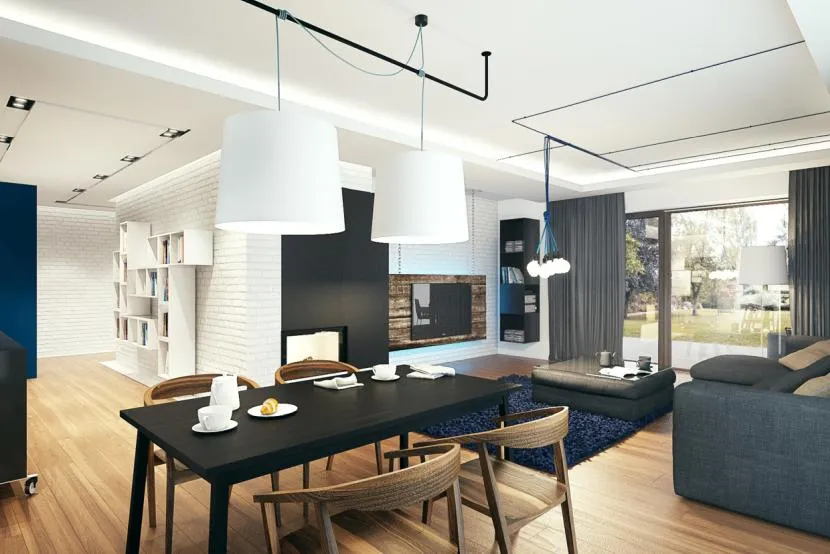 Обеденный стол будет центральным объектом помещения, под него приобретается ковер и шторы, также остальные предметы интерьера. Нужно подбирать массивное изделие прямоугольной или овальной формы и расположить в центре, заполнив максимум пространства.