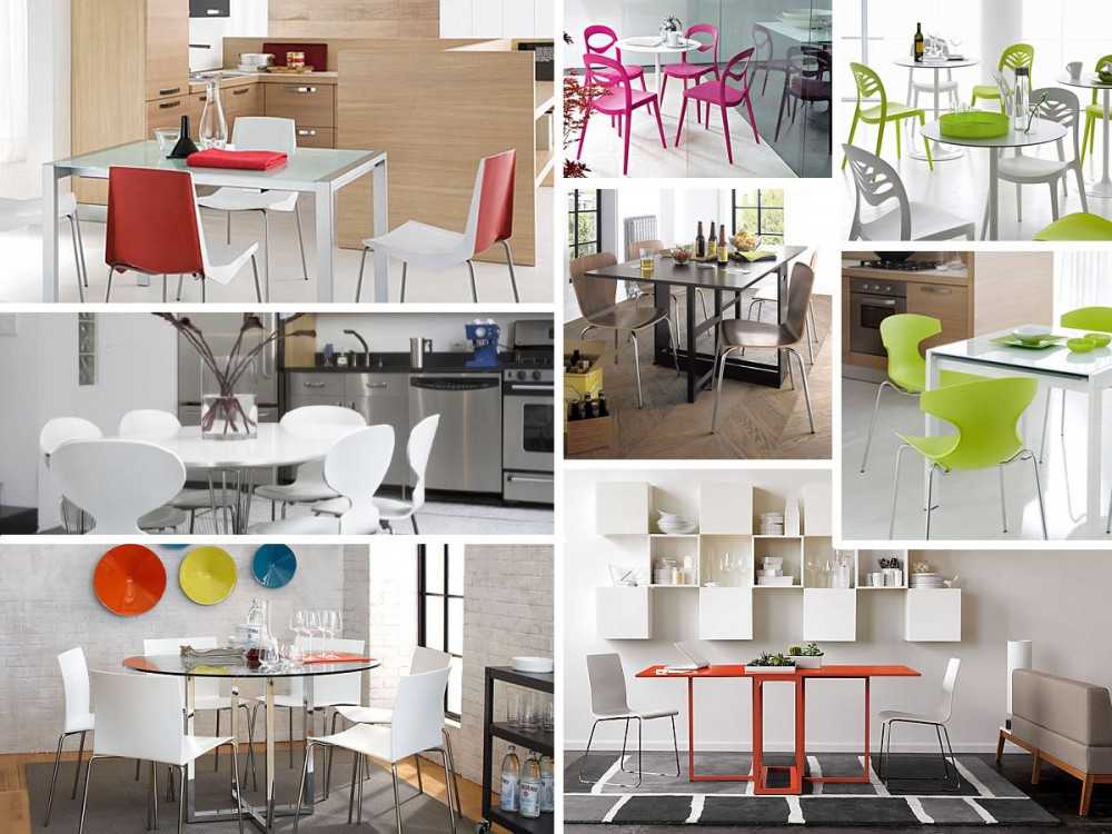 В современном интерьере давно стали популярны яркие неоновые цвета, которые легко комбинируются с белыми и светлыми оттенками. Сейчас отдаётся предпочтение сочным ягодным оттенкам, жёлтым и цвета лайма. Если же необходимо создать радостное весеннее настроение, то тогда стоит подбирать мебель для обеда белого или серого цвета.