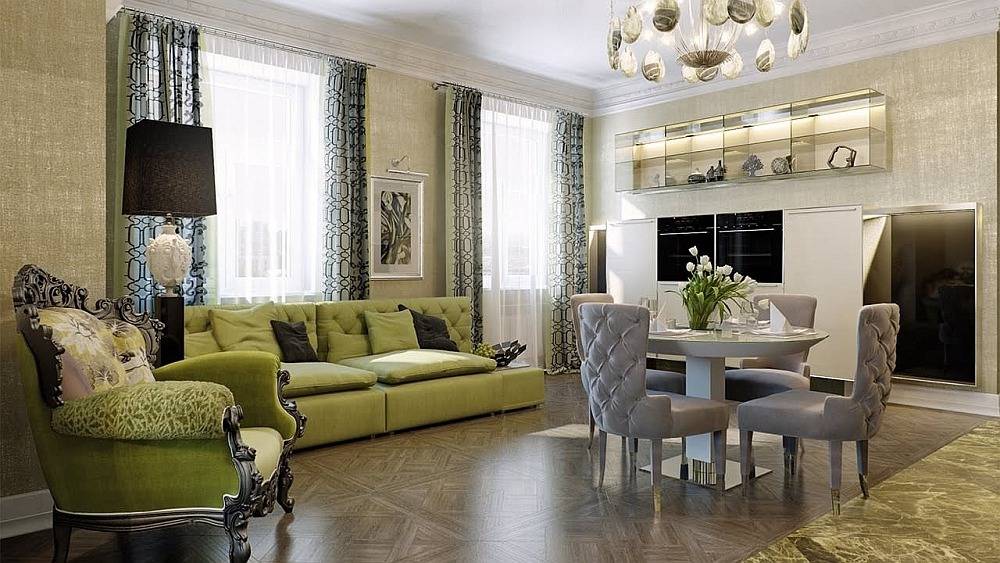 При выборе стульев, стола большое значение имеет сочетаемость материалов с гарнитуром. Деревянная мебель неуместна в интерьере в духе хай-тек, сверкающая хромом и стеклом обеденная зона не украсит классическую обстановку. Однако тенденции дизайна допускают нестандартные сочетания цветов, игру с оттенками и акцентами. Это позволяет создать интересный, непохожий на другие интерьер.