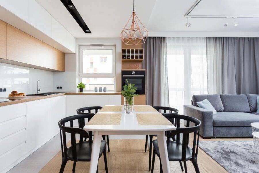 Разделение пространства кухни-столовой – одна из главных задач. Оно позволит добавить помещению формы и объема, решить вопросы декоративного оформления. В дизайне интерьера применяют 2 основных способа зонирования.