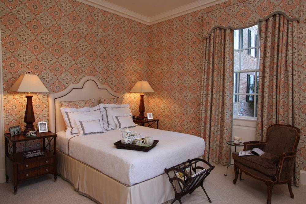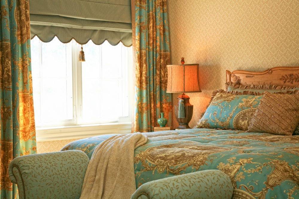 Обилие узоров перегружает помещение. Поэтому, при отсутствии конкретной стилистической задумки, рекомендуется придерживаться варианта при котором рисунок есть либо на стенах, либо на шторах.