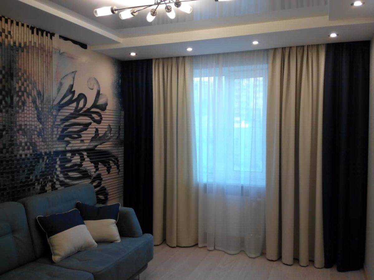 Извечный дуэт – тюль и занавески продолжает оставаться на буме популярности, но в ближайшее время актуальность стали приобретать шторы, скомбинированные из материалов двух разных расцветок.
