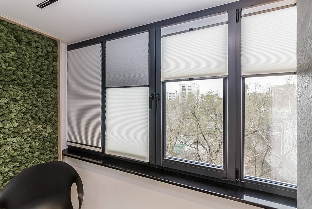 — Среди солнцезащитных систем шторы плиссе наиболее компактны. В поднятом состоянии их практически не видно на створке окна.