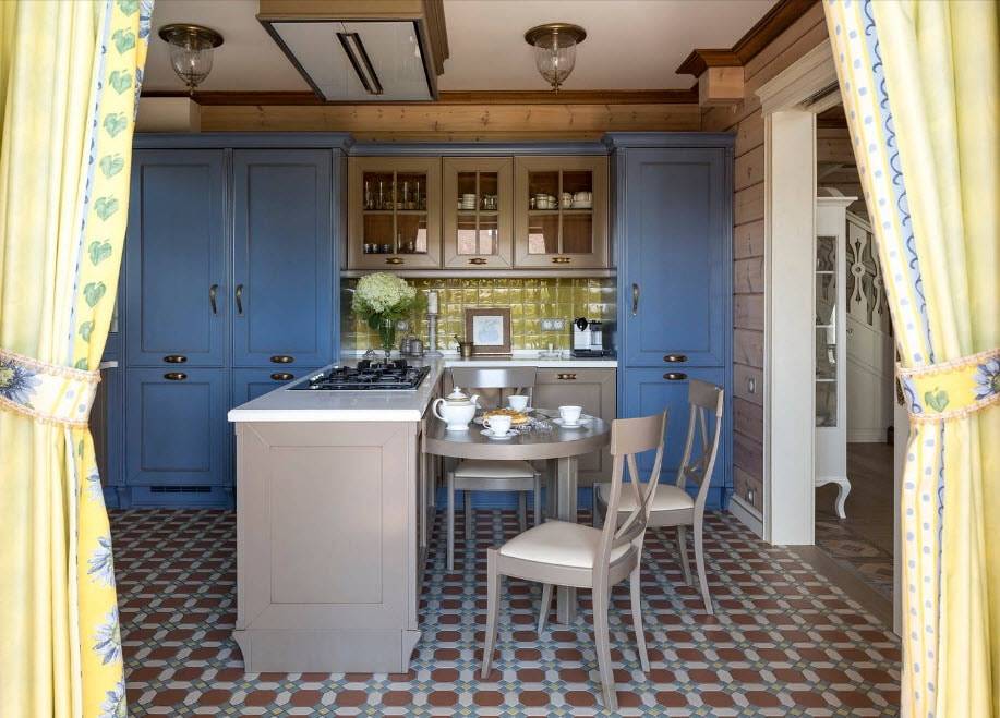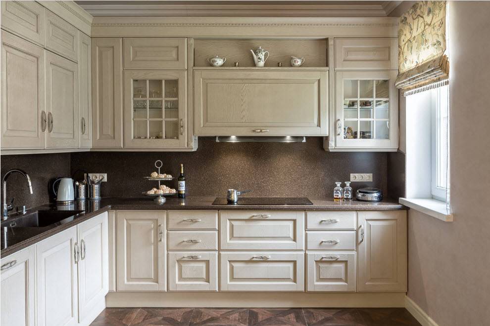 Для классического интерьера кухни подходят багетные конструкции. Внешнюю сторону багета украшают узорами с позолотой, серебром.