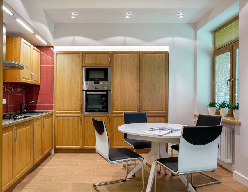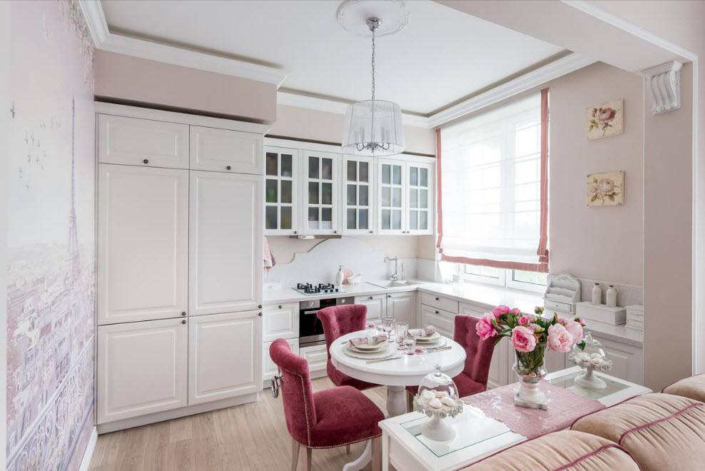 Очевидное правило, которого всегда стоит придерживаться – конструкция и рисунок штор должны гармонировать с общей планировкой кухни. От её дизайна зависит выбор текстиля на окна, который не только может защитить от ярких солнечных лучей, но и успешно замаскировать погрешности в интерьере.