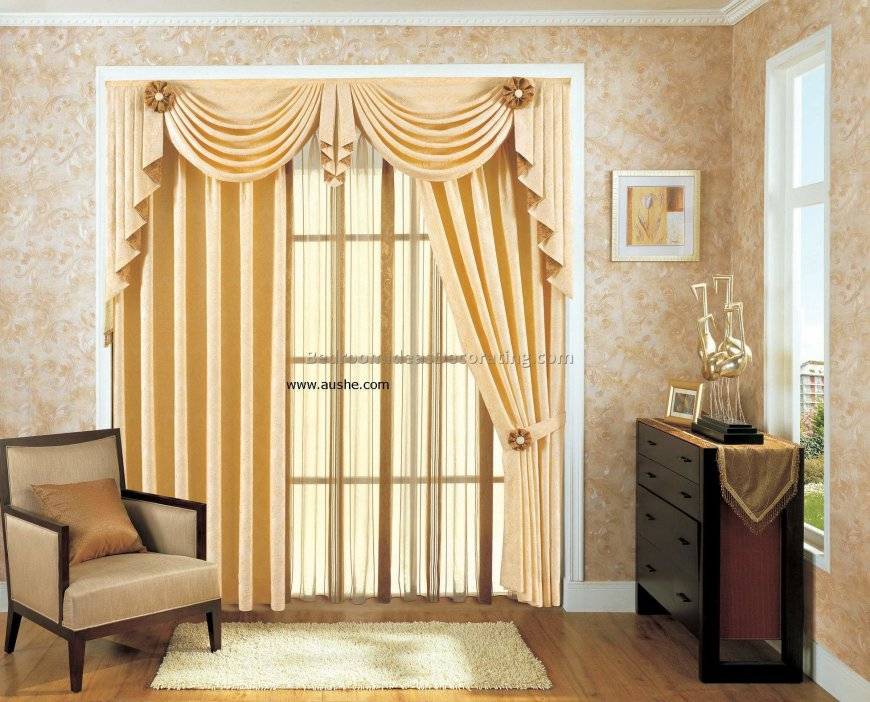 В интерьере гостиной находят применение разнообразные стили и формы современных штор.