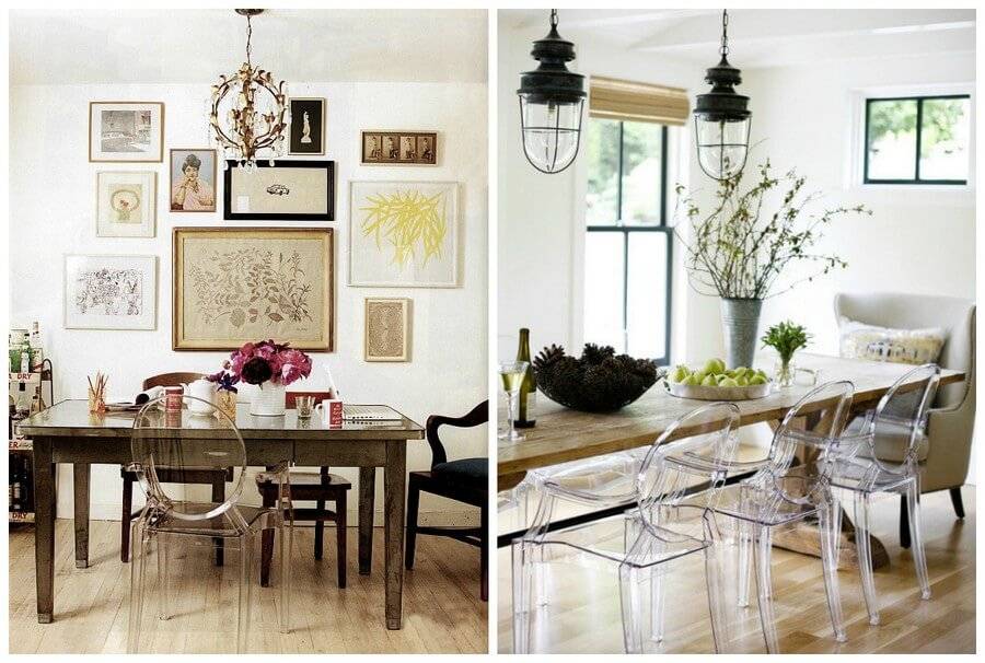 Классический стул обычно ассоциируется с деревянными элементами или обитым сиденьем. Однако в случае с прозрачной модели мы видим только прозрачную поверхность, которая своей легкостью не перегружает интерьер, а иногда создает впечатление невидимости. Благодаря этому он идеально подходит для небольших помещений, где сложно разместить массивные кресла и стулья.