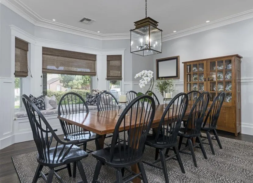 Владельцы современных домов и квартир питаются на кухне или (иногда) в гостиной; отдельную столовую встретишь не часто. В объединённом пространстве выделить место для столового гарнитура намного проще.