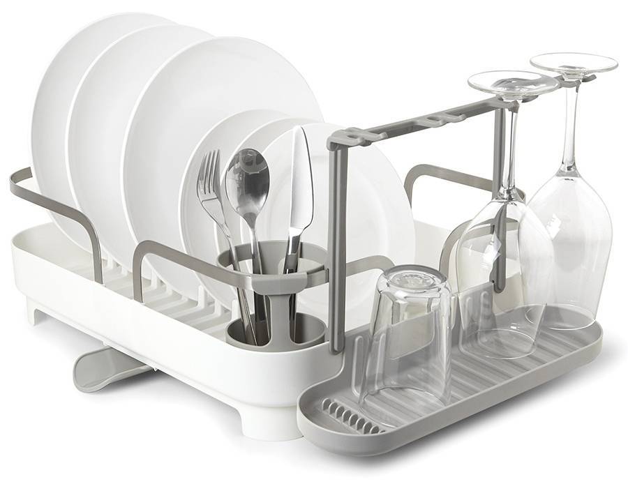 Можно подобрать вариант в тон стен или штор, тогда приспособление для укладки сырых столовых приборов превратится в дополнительный декор. Внимания заслуживают складывающиеся или раздвижные трансформеры, которые при хранении занимают минимум места. Для небольшой кухни такие модели не совсем удобны – загромождают пространство, не защищают посуду от пыли и жира, случайных капель от мойки. Некоторые хозяйки устанавливают подобные пластиковые варианты в шкафы, подальше от воды и глаз.