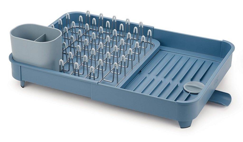 Эта одноуровневая конструкция предназначена для сушки тарелок и кухонных гарнитуров на столе. Устройство относится к категории раздвижных. Корпус выполнен в синем цвете и отлично смотрится в любой обстановке. По мнению покупателей, именно такого бренда изделие лучше купить для сушки посуды в домашних условиях. Позволяет сэкономить полезное пространство на столе, так как может увеличиться вдвое. Для размещения столовых приборов производителем предусмотрен стакан, поделенный на две части. На дне подставки расположено специальное отверстие для отвода влаги. Водосток можно закрыть посредством вентиля.