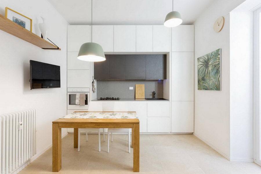 Для маленькой кухни хорошим вариантом будет использование точечных светильников.