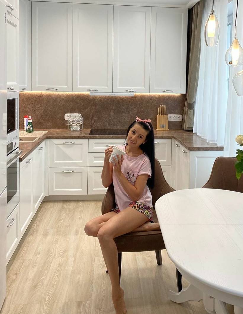 Одноуровневый потолок, сливающийся со стенами – это классическое решение, которое кому-то покажется скучноватым. Дополнить его поможет домашний текстиль, мебельная фурнитура, витражные или стеклянные вставки на дверях, столешница, гарнитур и другие детали интерьера.